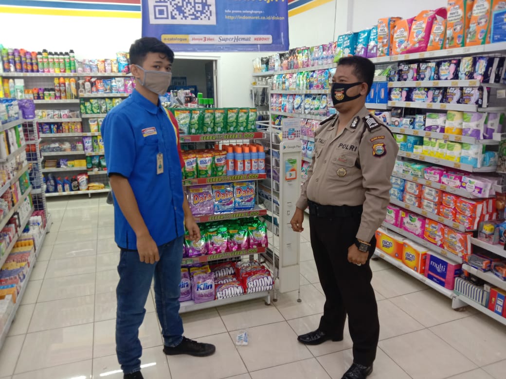 Sambang Alfamart Bhabinkamtibmas Desa Kalukuang Berikan Pesan Kamtibmas dan Berikan Masker