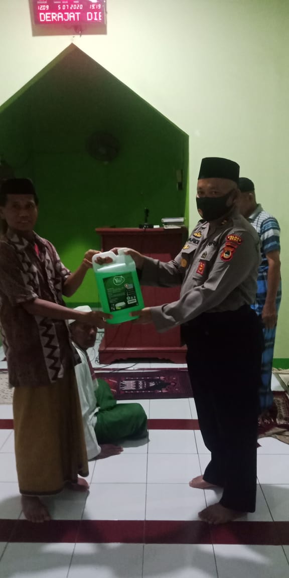 Di akhir kegiatan, Kapolsek memberi bantuan sabun cuci tangan kepada pengurus Mesjid, agar nanti jamaah dan masyarakat yang mau beribadah ke mesjid ini, bisa terlebih dahulu mencuci tangan.