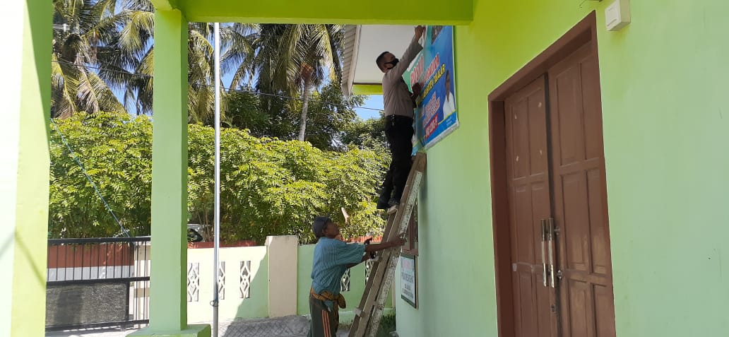 Sambut awal pelaksanaan tugas dengan semangat pagi, Tiga Pilar Kamtibmas Desa Laguruda bersama Warga, melakukan persiapan Posko Balla Ewako.