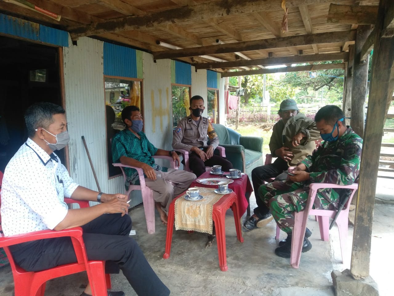 Kali ini kegiatan sambang dilaksanakan di kediaman Kepala Lingkungan Bontonompo Kelurahan Canrego Mansur Daeng Sura dan dalam kesempatan tersebut Bhabinkamtibmas bersama Babinsa dan Kasi Pemerintahan Kelurahan Canrego yang mewakili Lurah menyampaikan pesan-pesan kamtibmas kepada warga masyarakat serta melakukan koordinasi tentang Harkamtibmas di wilayah binaan, Sabtu (04/07/2020).