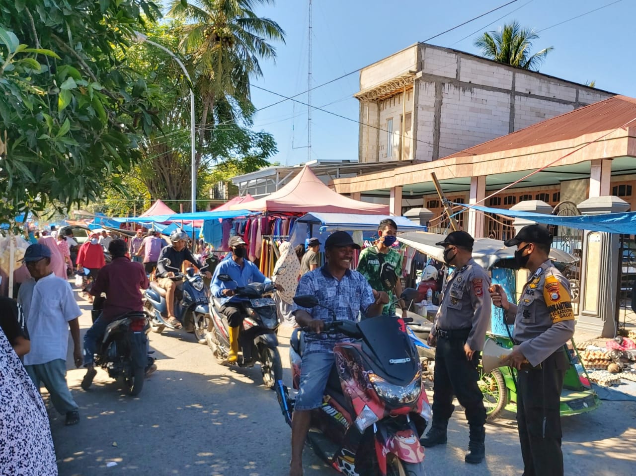 Nampak terlihat para personil terus menghimbau dan mengingatkan kepada seluruh pedagang pasar dan para pengunjung untuk mematuhi Protokol kesehatan dalam Program tatanan kehidupan baru (New Normal ) dalam beraktifitas sehari-hari.