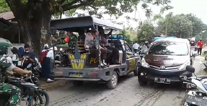SULSELBERITA.COM. Gowa, – Personil Polsek Bajeng Polres Gowa dipimpin Kapolsek Bajeng Polres Gowa Iptu Sunardi, SH, MH bersama Puskesmas Bajeng dan Anggota Koramil 06 Bajeng, melaksanakan kegiatan patroli dan sosialisasikan Tatanan kehidupan Baru, Senin (6/7/2020).