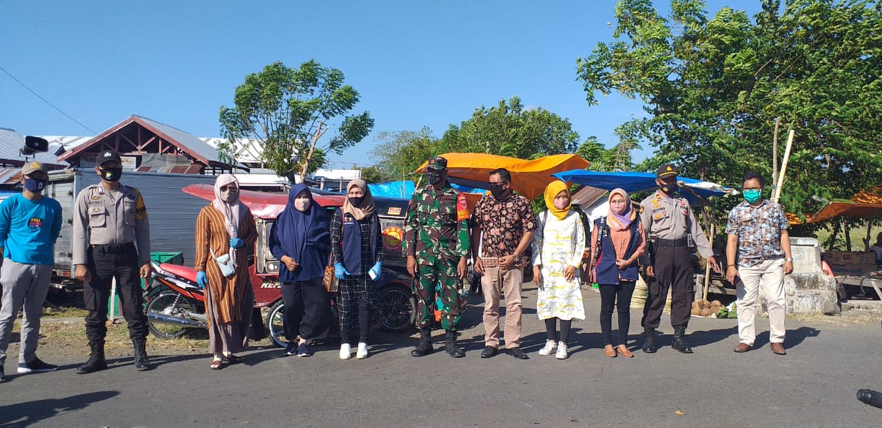 Kegiatan team Balla Ewako Desa Cikoang melaksanakan himbauan protokol kesehatan dipasar Jonggo untuk memutus mata rantai virus covid 19 Sabtu/4 /07/2020
