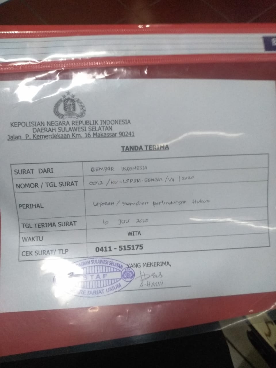 Atas kuasa dari orang tua Al Ghifari, Ketua Umum LSP3M Gempar Indonesia Sulawesi Selatan resmi melaporkan Gugus Tugas Covid 19 dan dokter rumah sakit Wahidin Sudirohusodo Makassar yang memvonis Al Ghifari sebagai positif Covid 19 yang meninggal tanggal 19 Juni 2020 dan dikuburkan di pemakaman Covid 19 virus Corona di Macanda Kabupaten Gowa.