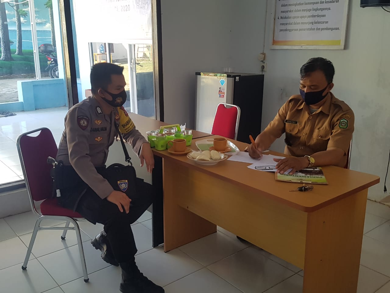 SULSELBERITA.COM. Takalar – Dalam upaya menciptakan situasi kamtibmas yang kondusif di Desa binaannya, Bripka Zainal Halim sambangi Kepala Desa Banyuanyara Kecamatan Sanrobone Kabupaten Takalar, Senin (27/07/2020).