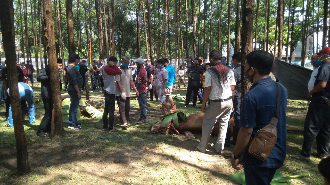 Lokasi di pemotongan di lakukan di samping halaman musolah DPRD provinsi Riau sapi , yang akan di Potong untuk kurban hari ini Minggu (02/08/2020) berjumlah (7) ekor sapi , dan (1) satu ekor kerbau Menurut keterangan dari Asri Ausar kita berkorban untuk di berikan kepada masyarakat yang kurang mampu khususnya di lingkungan sekitar Pekanbaru dan anak yatim-piatu allhadulilah ini semua berkat izin dari Allah SWT, kita bisah berkorban di halaman DPRD ini.