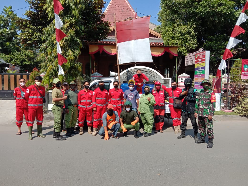 Sterilisasi Wilayah, Babinsa Kelurahan Sewu Bantu Penyemprotan Disinfektan