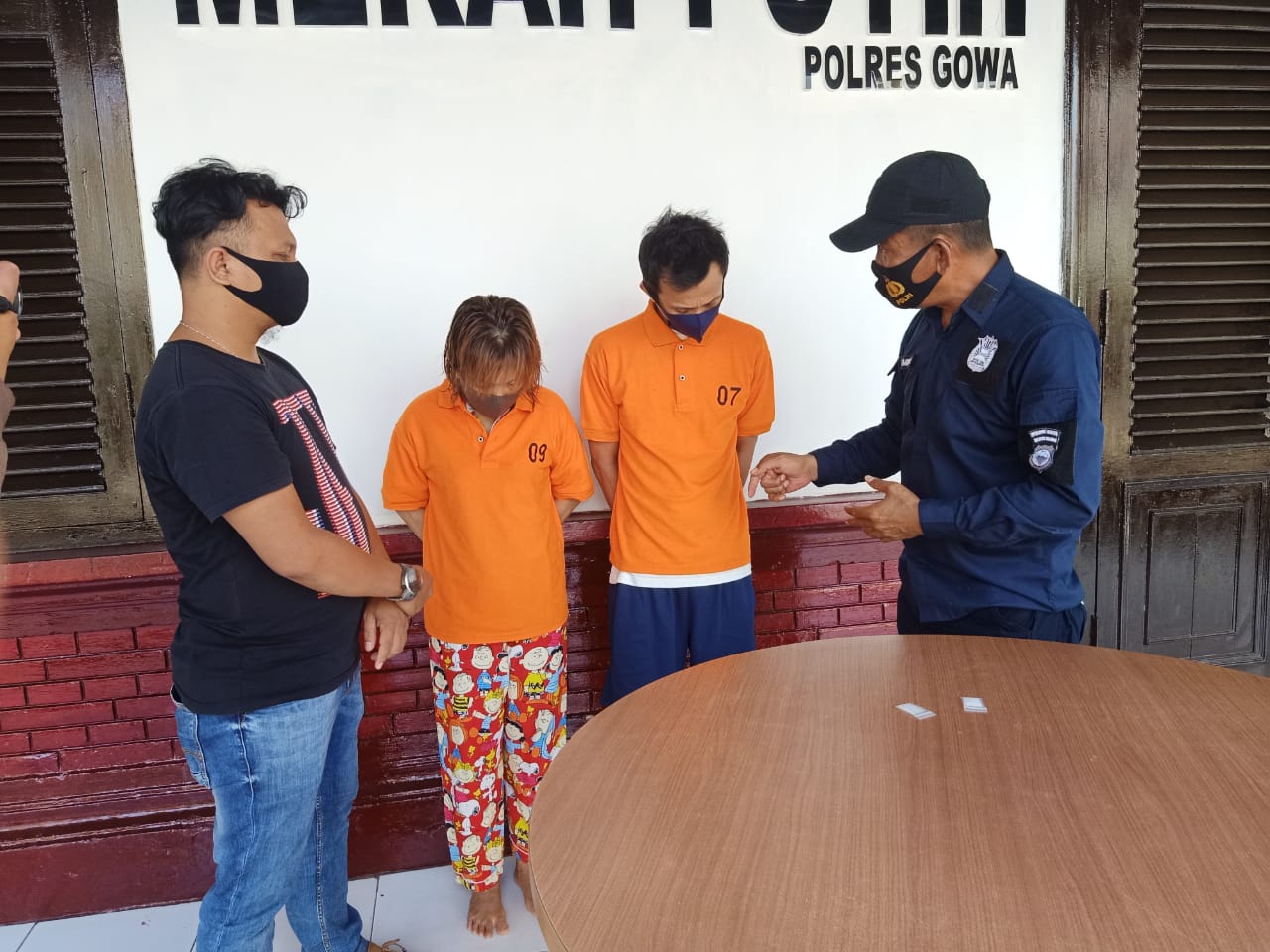 Melihat gerak gerik mencurigakan dari kedua pelaku yang juga merupakan pasangan suami istri selanjutnya personil sat narkoba Polres Gowa menggeledah kedua terduga pelaku.