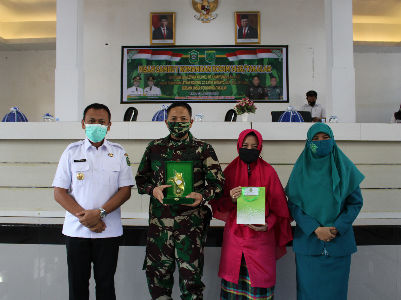 SULSELBERITA.COM. Takalar – Bupati Takalar H. Syamsari,S.Pt.MM mengucapkan selamat jalan dan salam perpisahan kepada Letkol Inf. Ilham Yunus,S.Sos.,M.Si. Rabu siang (05/08/2020), pada acara pisah sambut Dandim 1426 Kabupaten Takalar di Baruga Imannindori Lantai I Kantor Bupati Takalar.