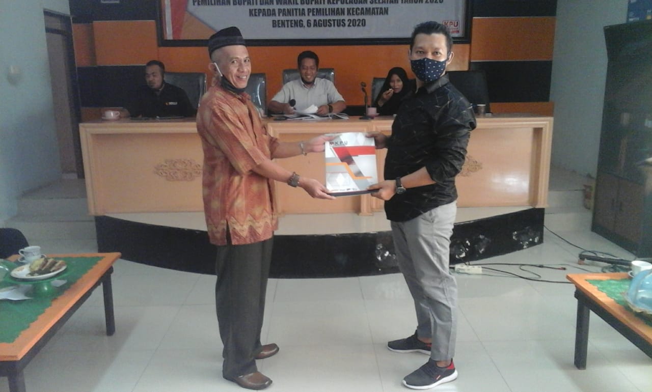 SULSELBERITA.COM. Selayar, — Berkas dukungan perbaikan bakal pasangan calon (bapaslon) perseorangan pemilihan calon bupati dan wakil bupati Kepulauan Selayar tahun 2020 yang beberapa malam lalu, telah ditetapkan secara resmi melalui rapat pleno terbuka, hasil verifikasi administrasi (vermin) terhadap berkas dukungan perbaikan bakal pasangan calon (bapaslon) perseorangan, hari ini, Kamis, (6/08) siang, diserahkan secara resmi dari Komisi Pemilihan Umum (KPU) Kabupaten Kepulauan Selayar, Sulawesi-Selatan, bertempat, di ruang rumah pintar pemilu (RPP) KPU, di ruas Jln. Jend. Achmad Yani, Benteng.