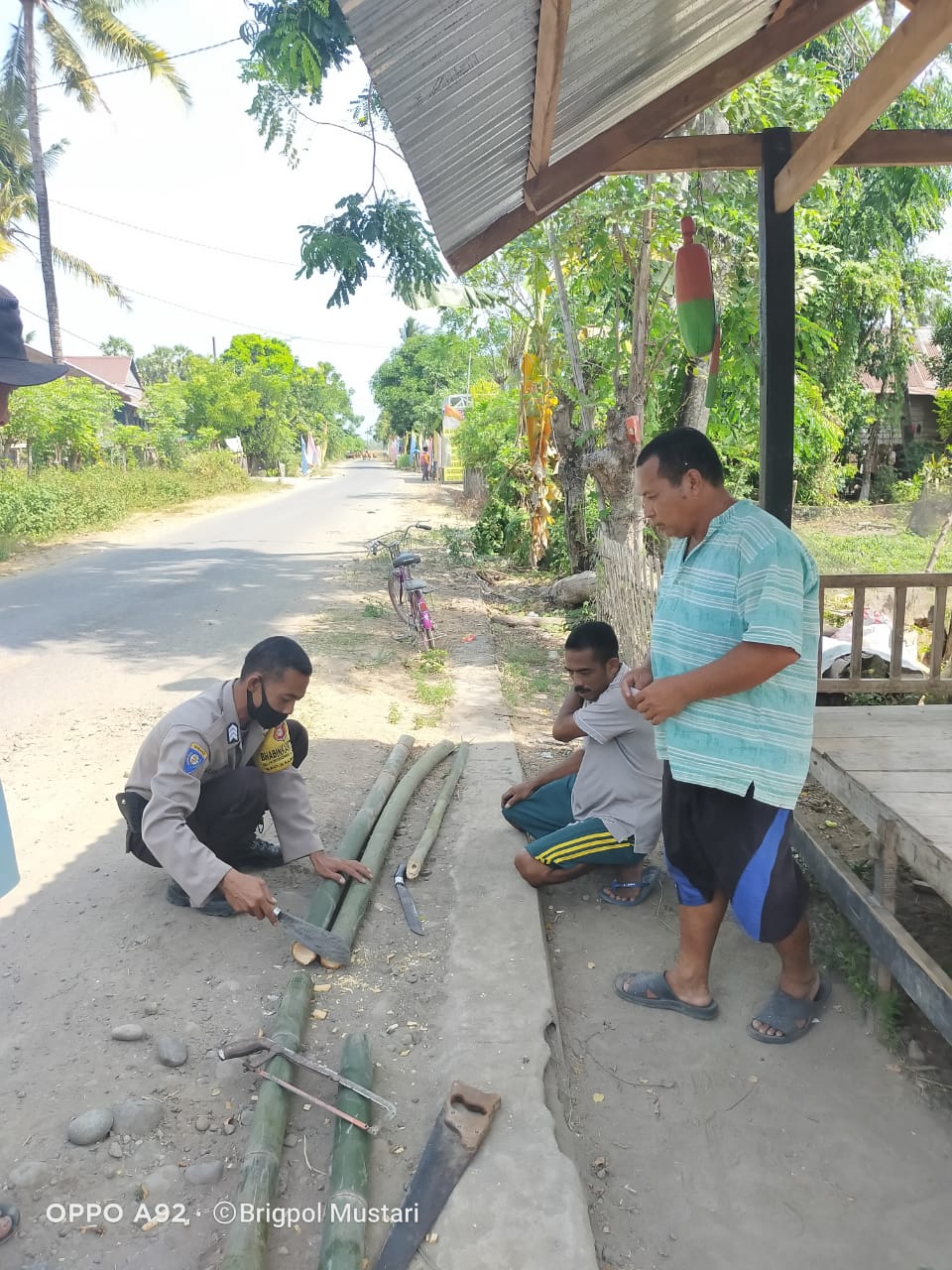 Bhabinkamtibmas Tonasa Polsek Mapsu Polres Takalar, Bantu Warga Buat Pagar