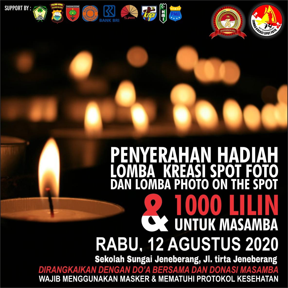 SULSELBERITA.COM. Gowa – Sebanyak 53 karya Spot Foto dari para peserta Lomba Kreasi spot foto yang terdiri dari pencinta seni mulai dari kalangan siswa SMA/SMK dan berbagai kalangan lainnya dalam rangka memperingati rangkaian Hari Bhayangkara ke 74 dengan tema “Seni budaya dan Pariwisata” telah berakhir digelar.