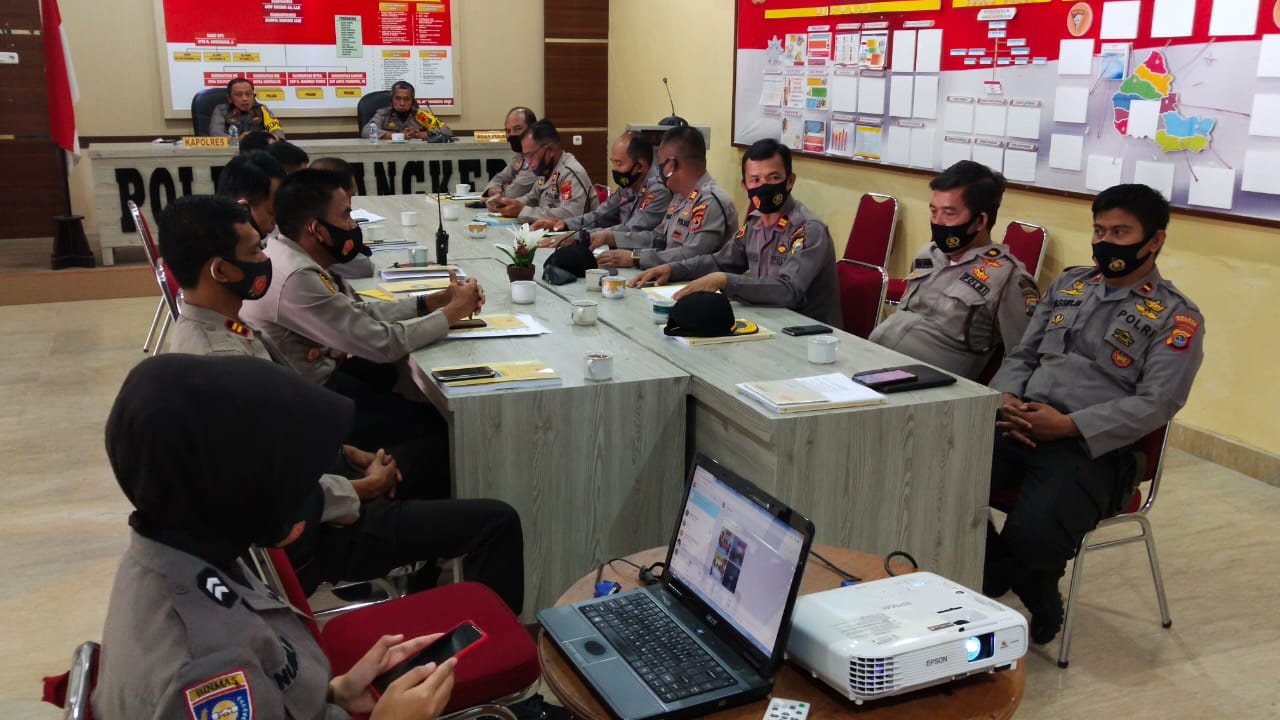 “Agar setiap anggota meningkatkan kinerjanya sesuai fungsinya, jangan kendor lakukan dengan penuh semangat dan tetap sosialisasikan kepada masyarakat tentang Adaptasi Kebiasaan Baru (AKB) dalam upaya pencegahan penyebaran Covid-19” Kata Kapolres