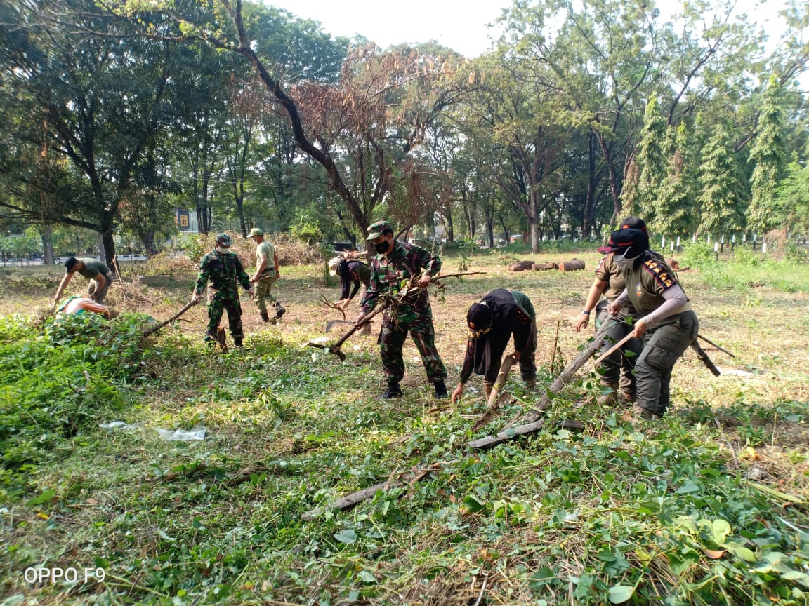 SULSELBERITA.COM. Surakarta – Danramil 04/Jebres Kodim 0735/Surakarta Kapten Inf Paidi beserta anggotanya bersinergi dengan DLH Surakarta, Satpol PP, Linmas Jebres bersama sama melaksanakan kegiatan kerja bakti di TMP Kusuma Bhakti Jurug Kelurahan Pucang Sawit, Surakarta. Senin, (10/8/2020) pukul 08:00 wib s.d. selesai.