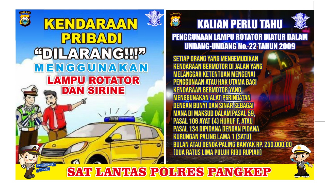 “Oleh karena itu, disampaikan kepada pengendara mobil jangan ada lagi yang memakai atau memasang sirine dan rotator.” Tegas Kasatlantas Polres Pangkep, AKP Mamat Rahmat, saat dikonfirmasi awak media melalui via whatsaapnya, Selasa (11/08/20) Pagi tadi.