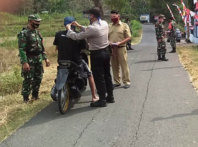 SULSELBERITA.COM. Boyolali – Menjelang HUT Kemerdekaan RI ke 75, sekaligus untuk memutus penyebaran virus Corona dan beberapa petugas gabungan TNI-Polri maupun Gugus Tugas Covid 19 di tngkat kecamatan menggelar kegiatan penegakkan protokol kesehatan. Kegiatan itu juga sekaligus membagikan masker kepada kepada pengendara, di Jalan Desa Talakbroto Kecamatan Simo,Kabupaten Boyolali. Selasa ( 11/08).