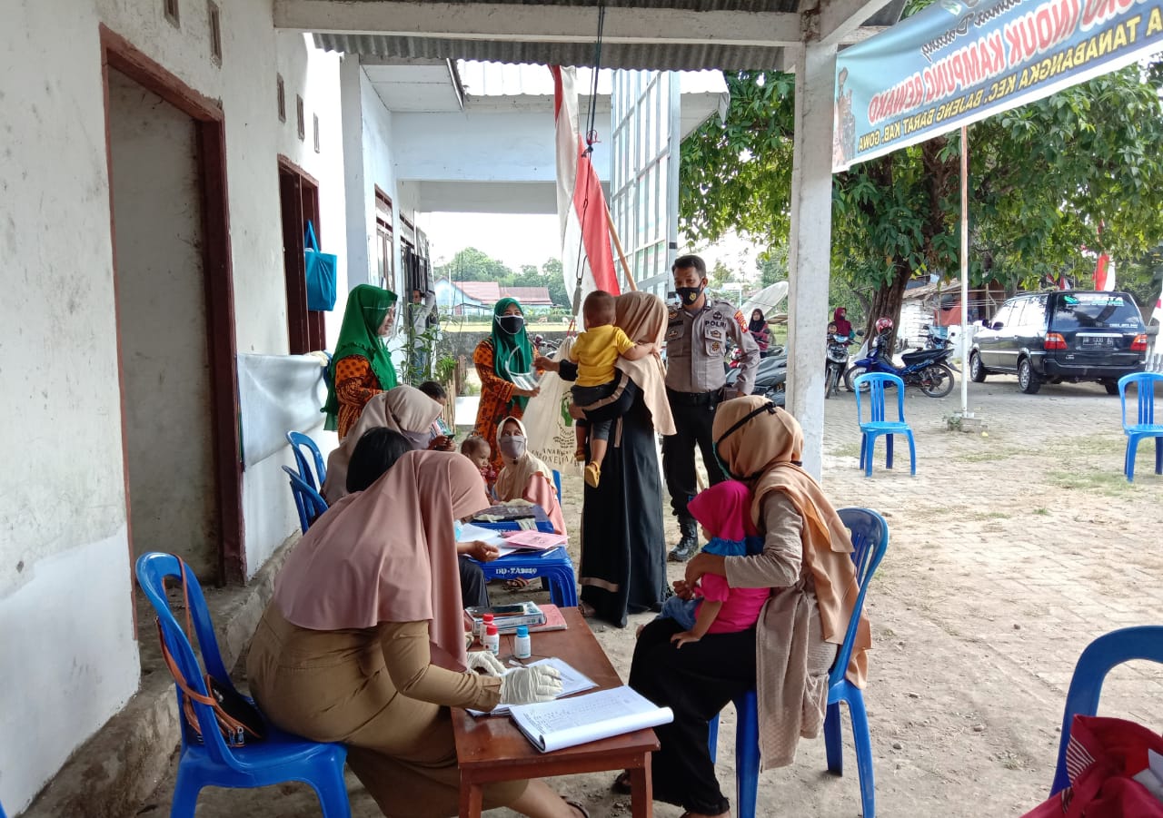 SULSELBERITA.COM. Gowa, – Bhabinkamtibmas Desa Tanabangka Polsek Bajeng Polres Gowa, Bripka Mawardi melaksanakan sambang dan memonitor kegiatan Posyandu di Posko Kampung Rewako Desa Tanabangka Kecamatan Bajeng Barat Kabupaten Gowa, Selasa (11/8/2020).