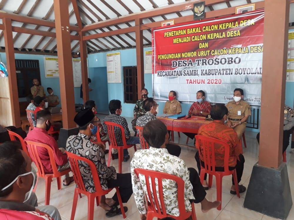 Babinsa Desa Trosobo menegaskan, bahwa dalam pelaksanaan rapat penetapan dan pengundian calon Pilkades Desa Trosobo sangat penting untuk tetap mengikuti himbauan dari pemerintah tentang protokol kesehatan pencegahan Covid 19, walaupun rapat ini juga penting bagi masa depan desa Trosobo sendiri.