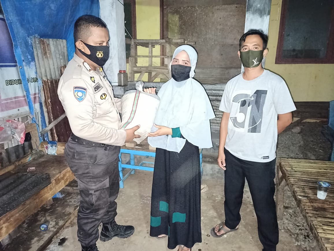 Bhabinkamtibmas Desa Sampulungan Salurkan Bantuan Beras, Polri Peduli Covid-19 Kepada Warga.