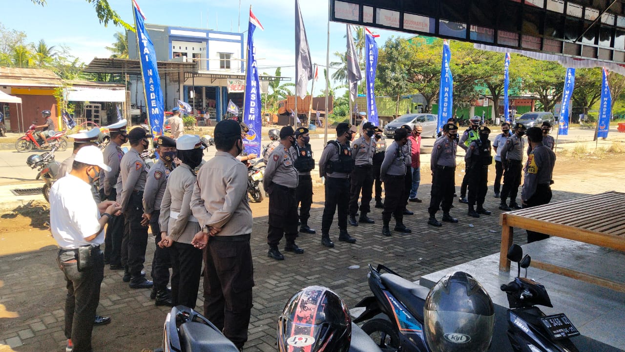 Seperti halnya hari ini tanggal 11 Agustus 2020 yang bertempat di halaman kantor DPC Partai Nasdem, 62 personil Polres Pangkep dilibatkan dalam pengamanan deklarasi calon bakal Bupati dan Wakil Bupati Pangkep.