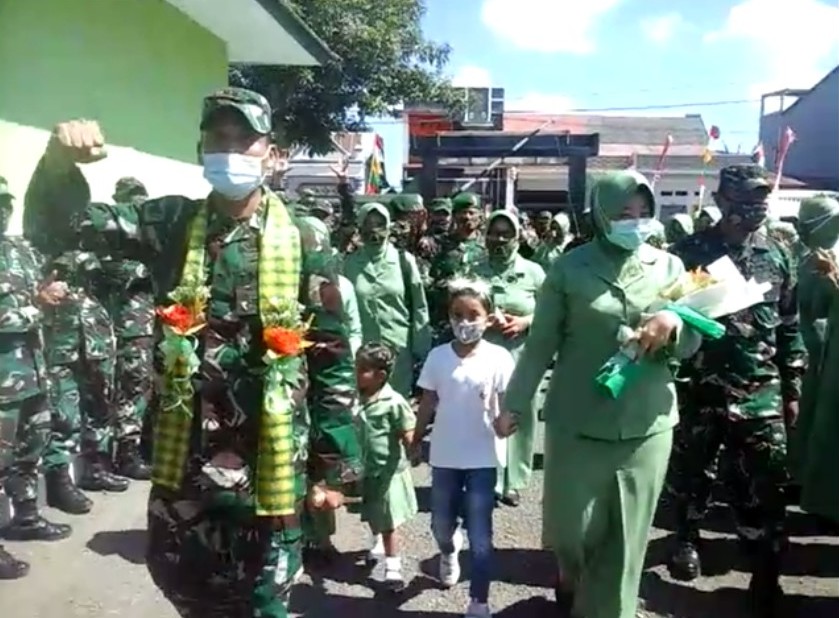 Prosesi penghormatan jajar yang melibatkan sekira seratus dua personil Kodim 1415/Selayar, dipimpin langsung Kasdim, Kapt. Inf. Busrah L. Usai prosesi penyambutan dan perkenalan dengan anggota serta jajaran Persit Kartika Chandra Kirana (KCK) Cabang XXIX Kodim 1415/Selayar, Lekol Kav. Adi Priatna bersama isteri, langsung menuju rumah dinas Dandim di ruas jalan Soekarno Hatta Benteng, untuk beristrahat. (Andi Fadly Dg. Biritta)