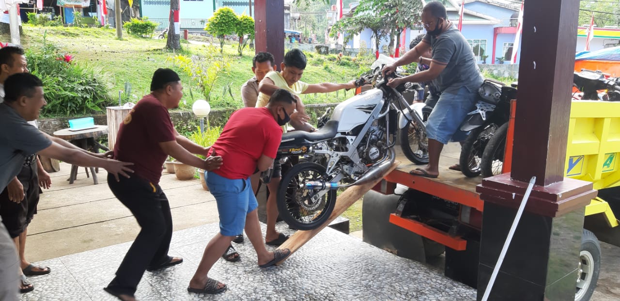 Sebelum di serahkan ke satlantas polres Gowa puluhan sepeda motor hasil balapan liar sempat di pajang di halaman kantor polsek Tinggimoncong sehingga seluruh masyarakat dapat melihat langsung kondisi kendaraannya.