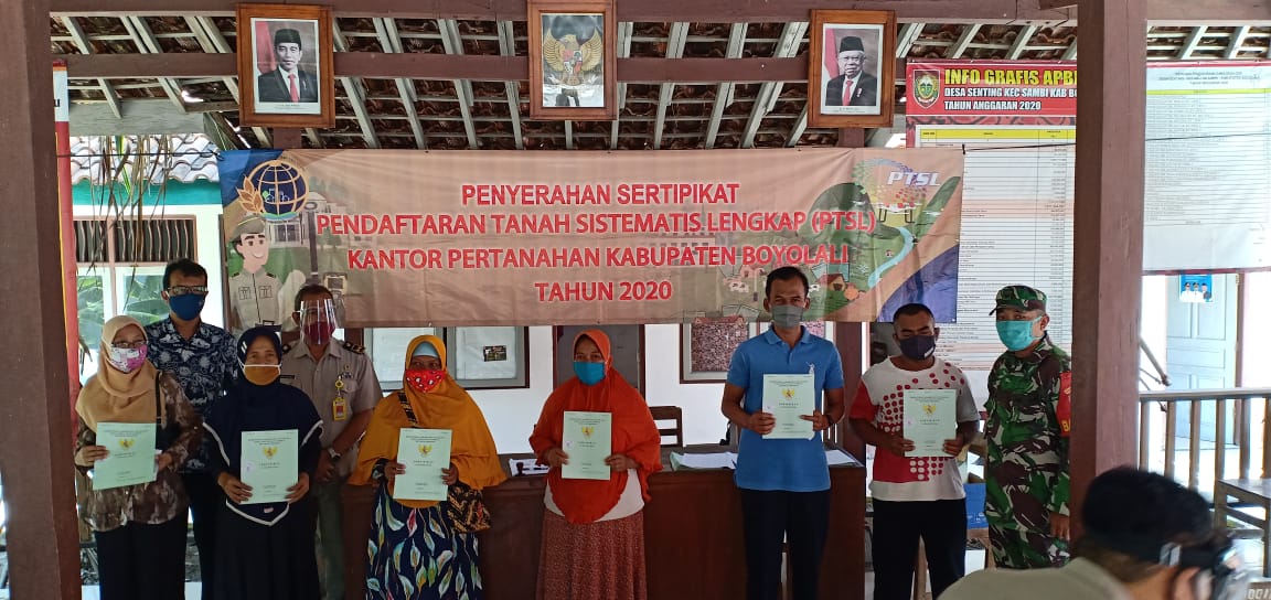 Pembagian PTSL ini diserahkan langsung perwakilan dari BPN (Badan Pertahanan Nasional) Kabupaten Boyolali serta dihadiri oleh Kepala Desa Senting, Kecamatan Sambi, kabupaten Boyolali.