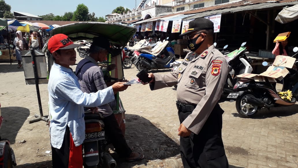 Kapolsek Bajeng Terjun Langsung Bagikan Masker ke Pengunjung Pasar Sentral Limbung