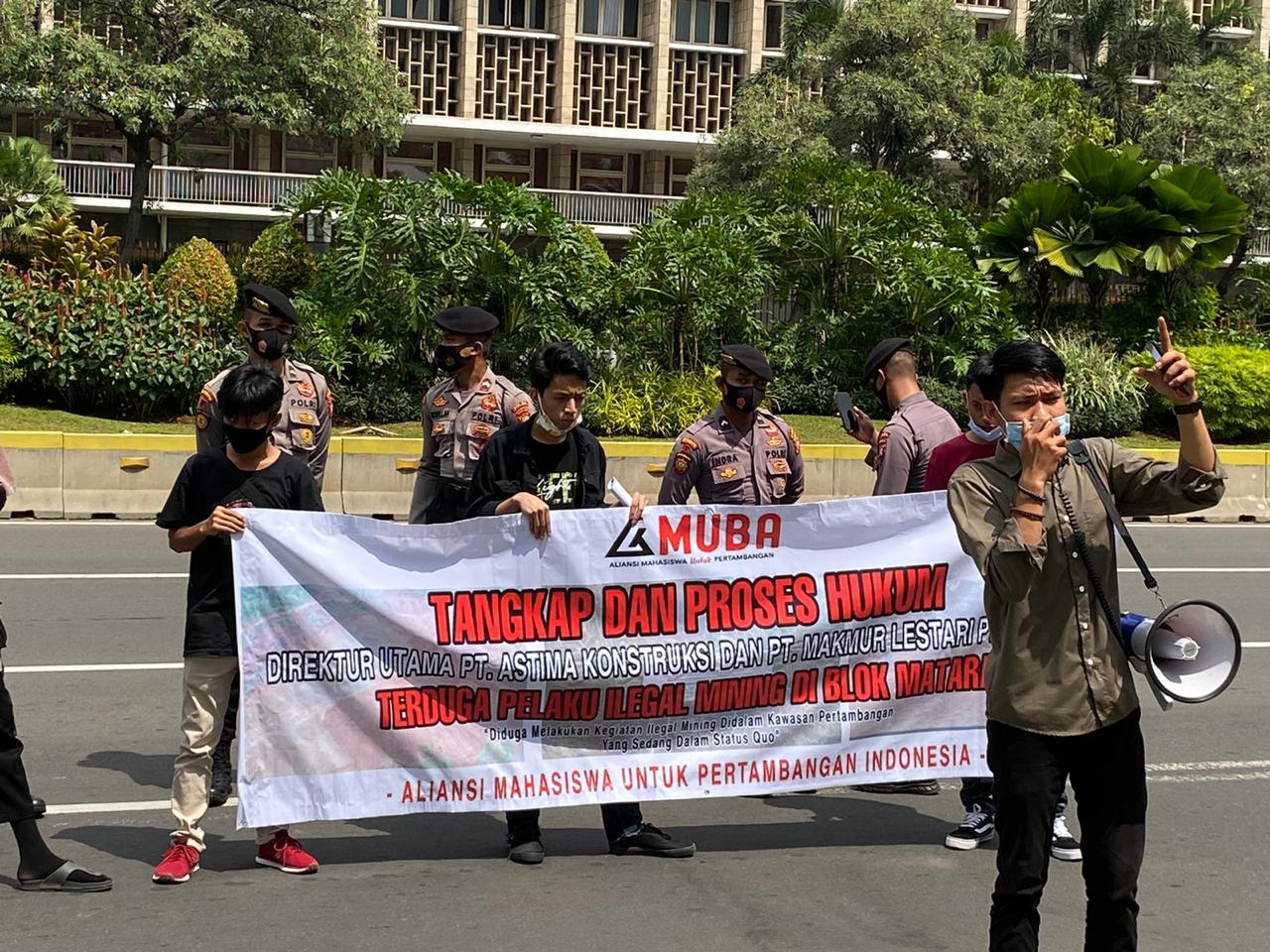 “Blok Matarape Merupakan kawasan pertambangan yang sedang dalam status quo akibat hasil lelang yang dianulir oleh kementerian ESDM RI, mestinya bebas dari kegiatan pertambangan. Namun ironisnya berdasarkan data dan hasil kajian, kami menemukan adanya aktivitas pertambangan yang diduga dilakukan oleh PT. ASKON dan PT. MLP secara ilegal”, Teriak Arnol Ibnu selaku Koordinator lapangan AMUBA Indonesia saat berorasi didepan Kementerian ESDM RI