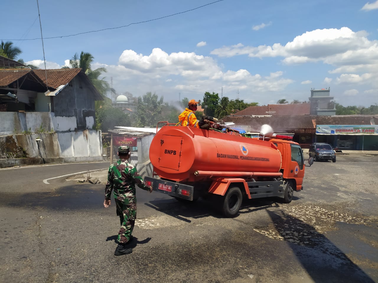 Koramil 03/Ngadirojo Bersama PMI Dan BPBD Semprot Disinfektan Guna Putus Penyebaran Covid-19