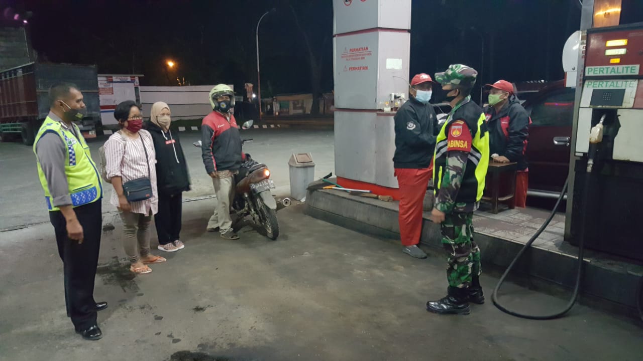 Terlihat ditempat pengisian bahan bakar Serda Mujiono ini menegur warga yang memakai masker tetapi tidak benar dan memintanya untuk tidak mengulanginya.