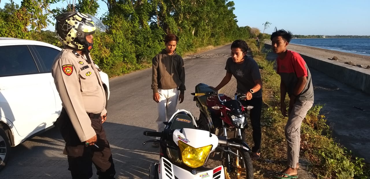 SULSELBERITA.COM. Takalar – Personil Polsek Marbo Polres Takalar di pimpin Ka.Spk Aipda Sapriandi Melaksanakan Patroli guna mengantisipasi Aksi balap liar di kawasan tanggul desa topejawa kecamatan mangarabombang kab.Takalar, Sabtu/05/09/2020