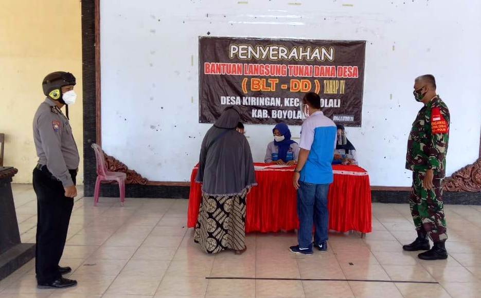 SULSELBERITA.COM. Boyolali. Kodim 0724/Boyolali melalui Koramil 01/Boyolali melaksanakan pendampingan dan pengawasan terhadap penyaluran Bantuan Langsung Tunai yang berasal dari Dana Desa kepada warga yang terdampak virus corona (Covid-19). Kamis (10/09).