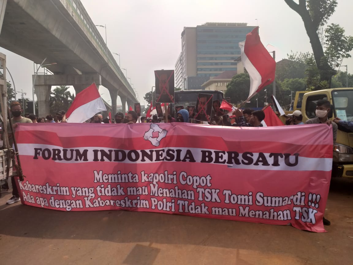 SULSELBERITA.COM. Jakarta – Forum Indonesia Bersatu (FIB) menggelar aksi damai di depan Mabes Polri Jl Trunojoyo Jakarta, Jum’at, (11/09/2020). Aksi yang pimpin Lisman Hasibuan ini meminta Kapolri dan Kabareskrim Polri untuk segera menahan dan menangkap tersangka Tommy Sumardi (TS) terkait keterlibatannya mengeluarkan red notice untuk terpidana korupsi Bank Bali.