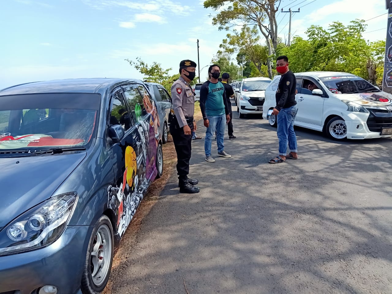 Terapkan Protokol Kesehatan, Personil Polsek Marbo Melakukan Pengamanan Komunitas Mobil Avanza Xenia Solutions Kab.Takalar