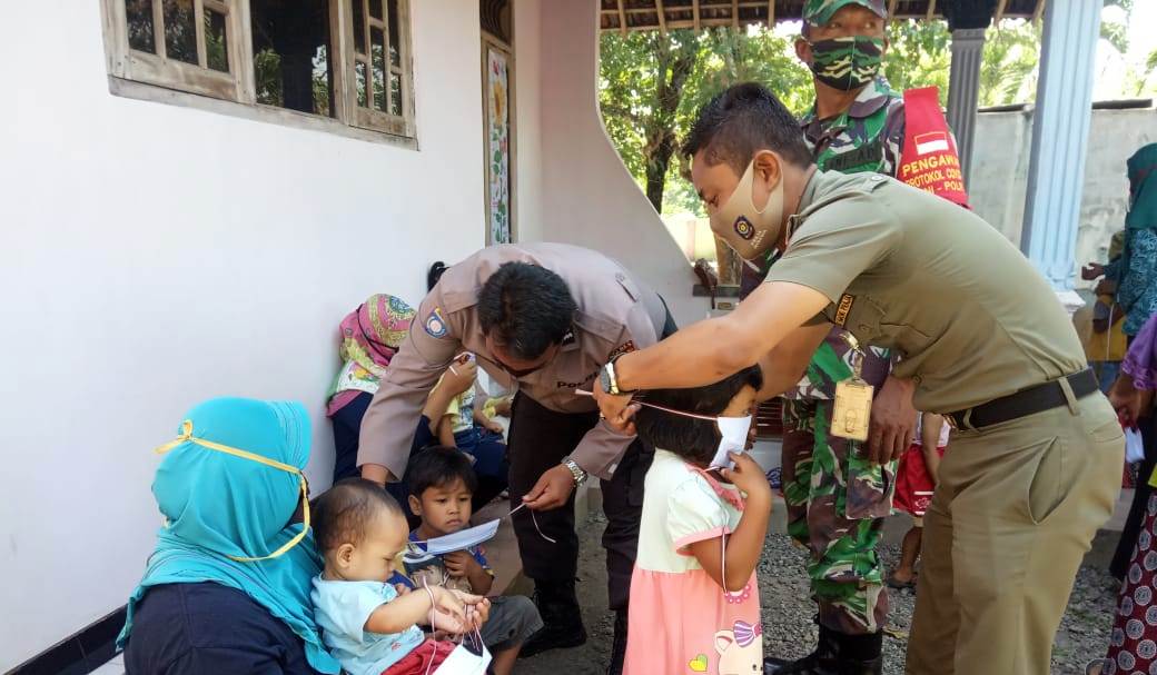 Acara di lanjutkan dengan pembagian masker bagi warga yang tak terkecuali anak anak.