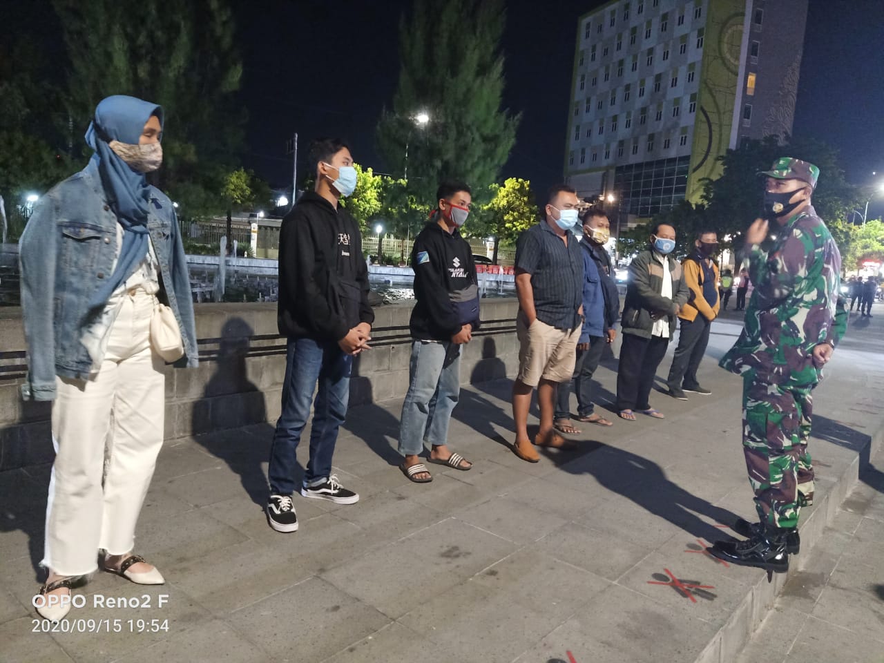 SULSELBERITA.COM. Surakarta, Selasa (15/09/ 2020) pukul 19.00 sd 20.05 WIB, Pasukan TNI dari Kodim 0735/Surakarta bersama-sama dengan Anggota Kepolisian dari Polresta Surakarta dan juga Satpol-PP Kota Surakarta menggelar Operasi Gabungan dalam rangka Cipta kondisi penanganan Covid-19, di Area Plaza Stadion Manahan, alamat Jl. Adi Sucipto Kelurahan Manahan Kecamatan Banjarsari Kota Surakarta.