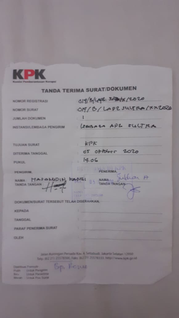 AP2-SULTRA, Laporkan Dugaan Korupsi Bupati Buton Selatan, ke KPK RI