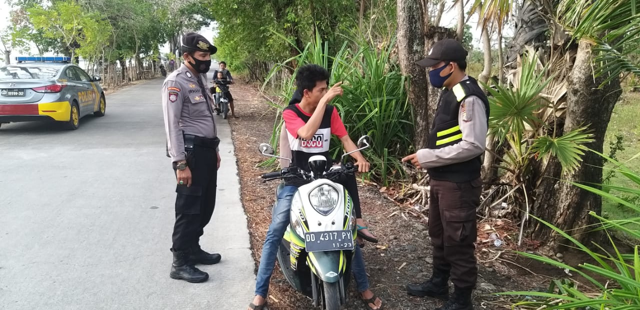 Bertempat di kawasan tanggul pantai Topejawa, personil Polsek Marbo Polres Takalar di pimpin oleh Kanit Binmas Polsek Marbo Polres Takalar Iptu Karsono merazia sejumlah pengendara sepeda motor yang tidak menggunakan masker. Alhasil sebanyak 19 0rang yang terjaring tidak menggunakan masker serta di berikan teguran lisan dan tertulis