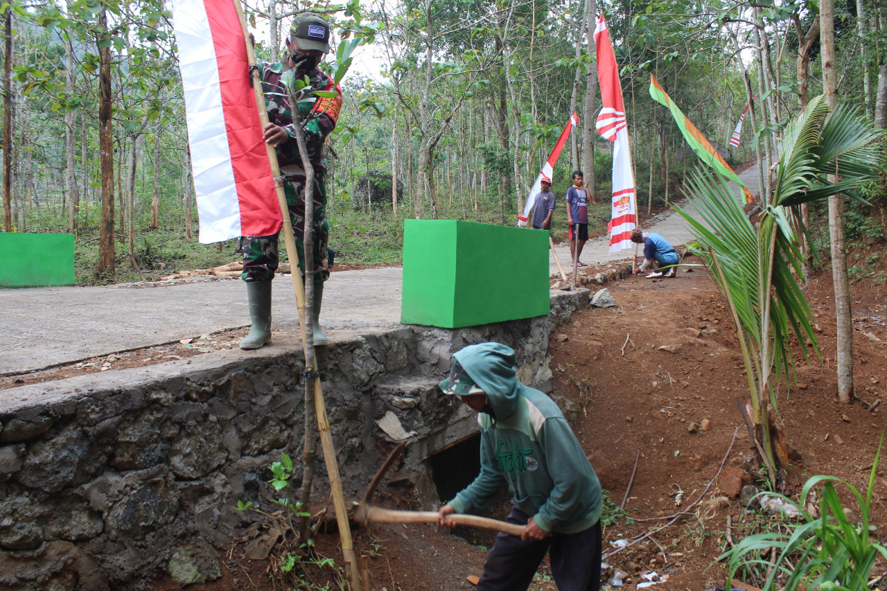Meriahkan Penutupan TMMD, Anggota Koramil 11/Manyaran Beserta Warga Pasang Umbul-Umbul
