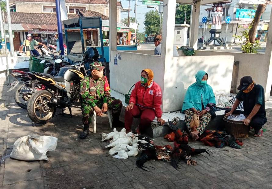 Seperti yang dilakukan Babinsa Koramil 10/Sambi Kodim 0724/Boyolali Serka Purgianto. Babinsa Sambi tersebut melaksanakan komsos sekaligus memberikan pemahaman kepada pedagang yang ada di Pasar Sambi Kecamatan Sambi Kabupaten Boyolali tentang penerapan di era new normal. Rabu (21/10).