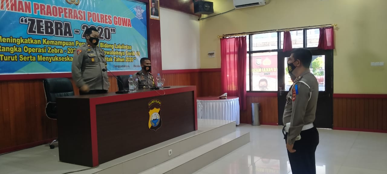 SULSELBERITA.COM. Gowa, — Polres Gowa menggelar latihan pra Operasi Zebra 2020 di Aula Endradharmalaksana Jln Syamsuddin Tunru Kel.Sungguminasa Kec.Sombaopu Kab.Gowa, Sabtu 24/10/2020 sekitar pukul 08.30 wita