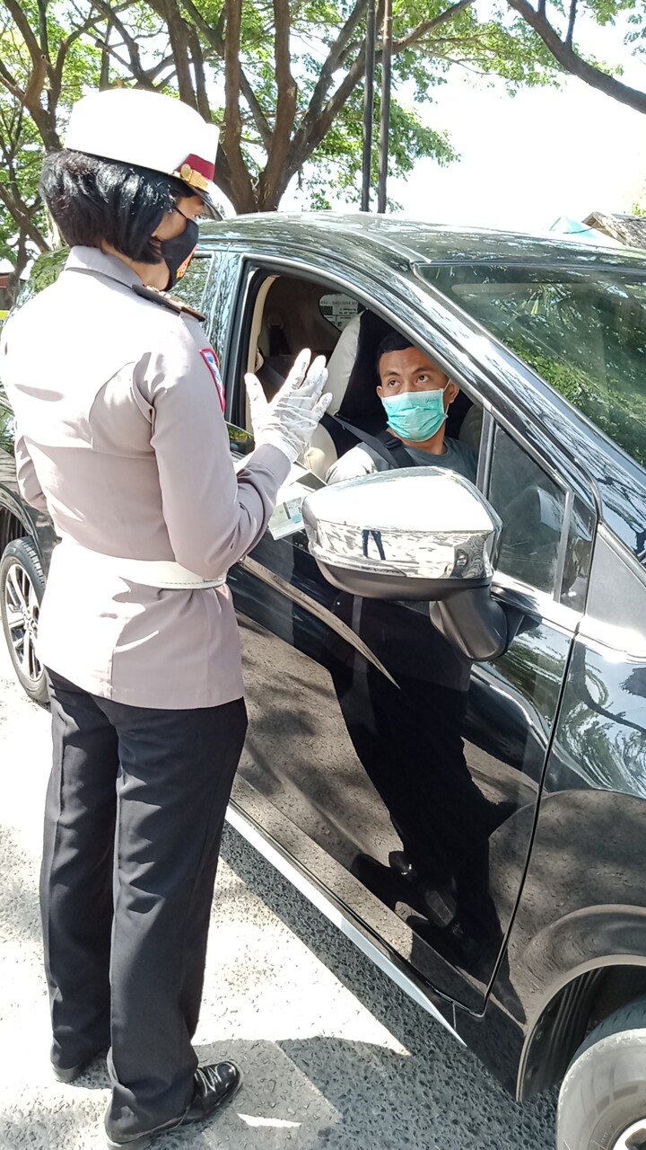 Dengan Menggunakan pengeras Suara kami menghimbau kepada masyarakat pengguna jalan tentang pelaksanaan Operasi Zebra 2020 yang di mulai pada hari senin tanggal 26 Oktober 2020 s/d Hari minggu tanggal 08 Nopember 2020,Pungkas Iptu Ida Ayu.