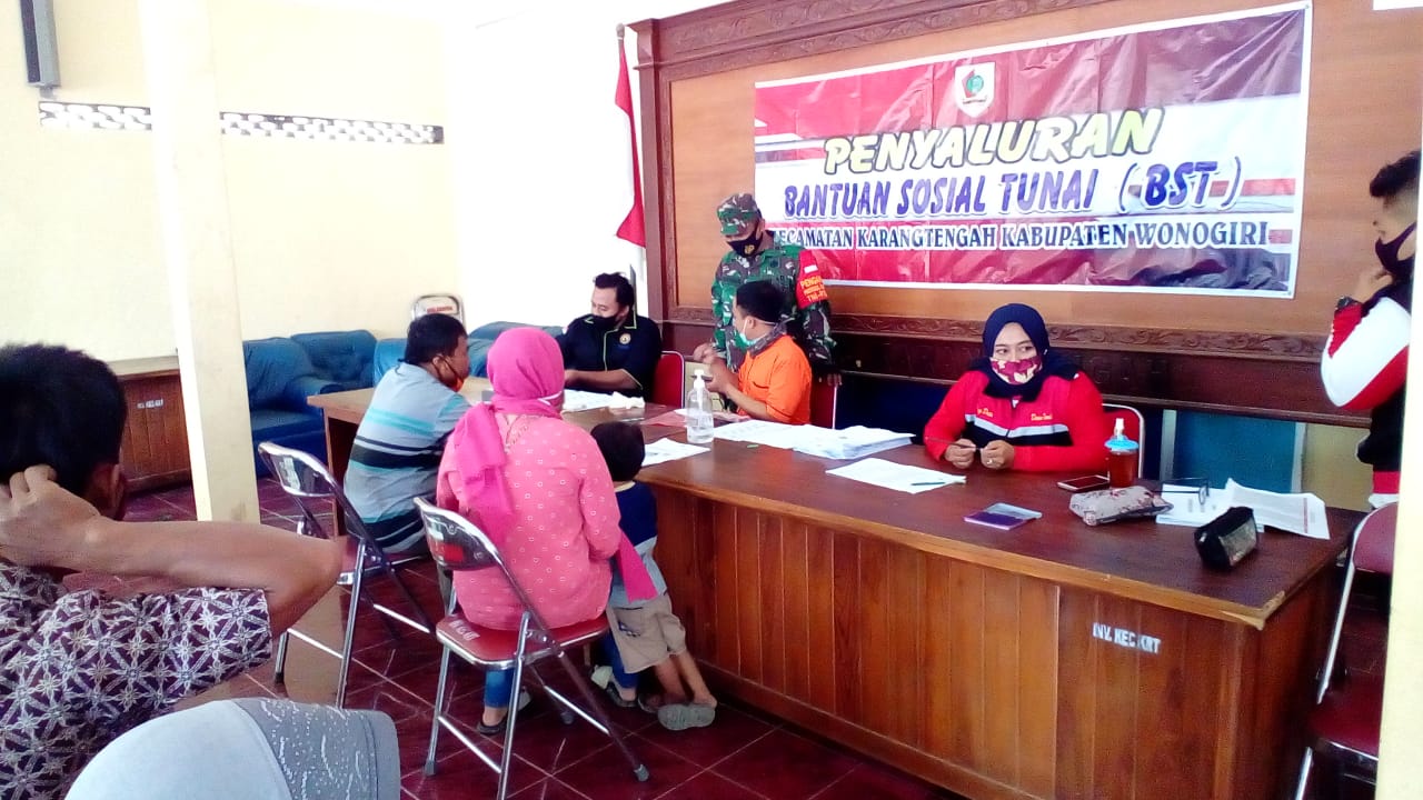 SULSELBERITA.COM. Wonogiri – Batuud Koramil 23/Karangtengah Peltu Khomaedi beserta anggota Babinsa Sertu Sutrisno, melaksanakan pendampingan dalam Penyaluran Bantuan Sosial Tunai (BST), Rabu (28/10).