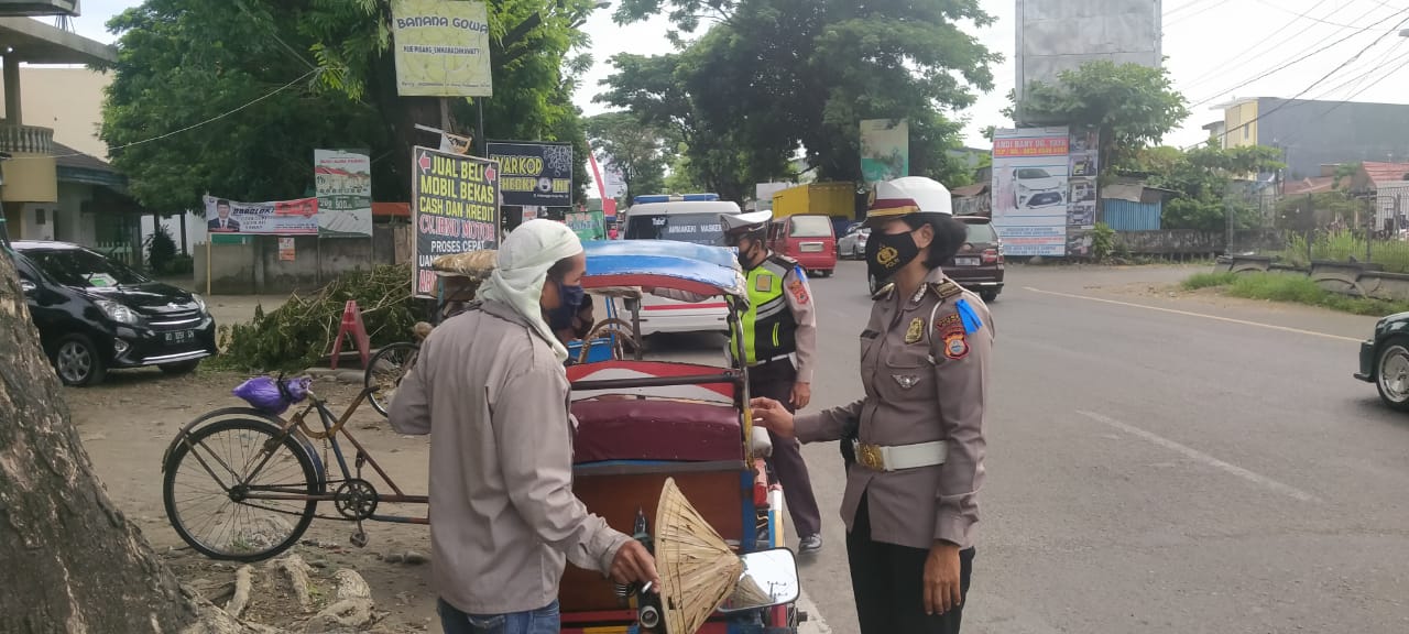 Seperti yang tampak pada pagi ini, kami memberikan himbauan kepada tukang becak, tukang ojek, serta masyarakat pengguna jalan untuk tertib dalam berkendara sehingga dapat menekan angka fatalitas korban laka lantas.