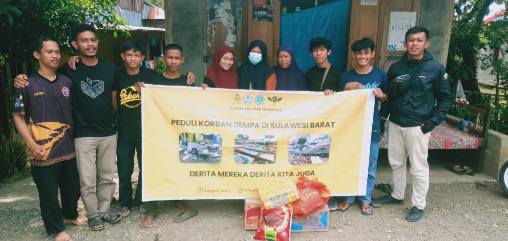 Dalam aksi kemanusiaan tersebut, relawan yang terdiri dari 2 alumni dan 7 mahasiswa menyalurkan bantuannya berupa sembako, obat-obatan, dan pakaian di tempat pengungsian terpencil Desa Ahu, Kecamatan Tapalang Barat walaupun medan yang dihadapi berbahaya dengan jalan yang berlubang dan becek serta perjalanan yang sangat melelahkan karena harus dilakukan dari pagi sampai petang.