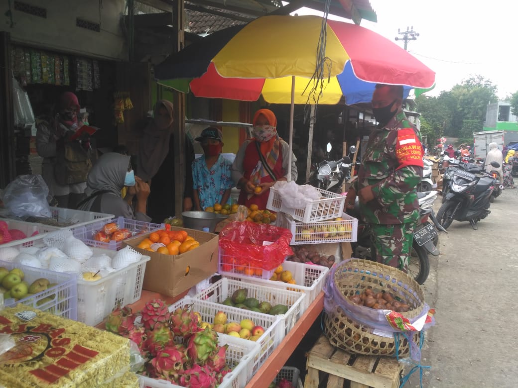 Gencarkan Penerapan Prokes Babinsa Sambangi Pasar Tradisional
