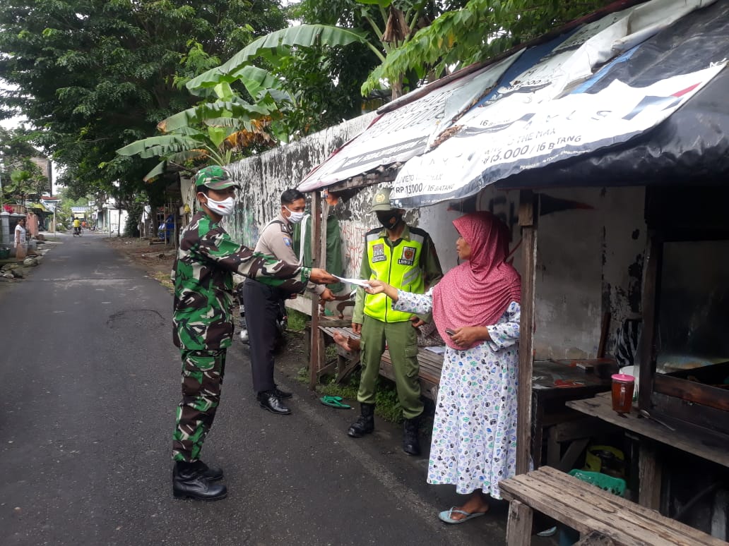 Babinsa Joyontakan dan Bhabinkamtibmas Blusukan ke Tingkat RT Terapkan PPPKM dengan Bagikan Masker