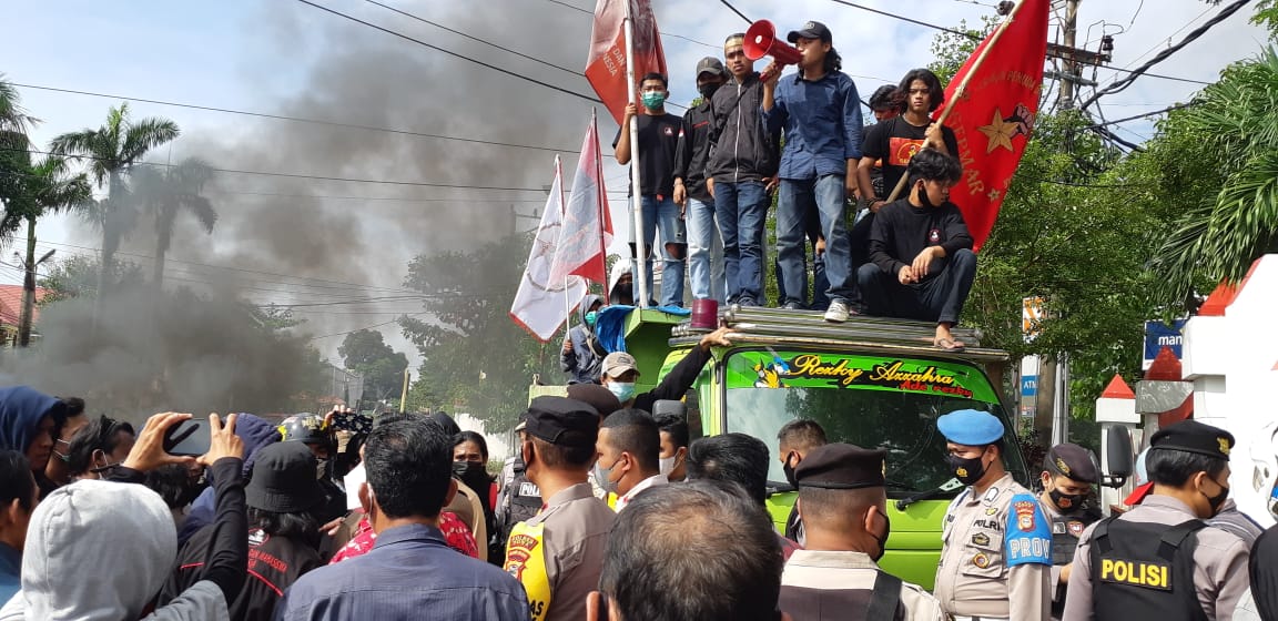 Namun, hanya beberapa menit usai jendral lapangan mengambil alih pengeras suara untuk menyampaikan kembali tuntutan aliansi, massa aksi berusaha untuk dibubarkan oleh aparat kepolisian Polres Gowa.