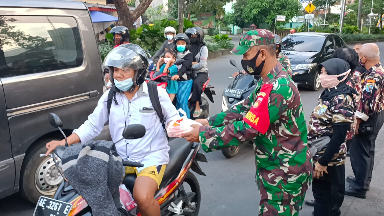 SULSELBERITA.COM.  Surakarta – Bulan Ramadhan yang penuh berkah tahun ini dimanfaatkan oleh Anggota Koramil 02/Banjarsari bersinergis dengan anggota Polsek Polsek dan FKPPI 1135 Surakarta Rayon 02/Banjarsari membagi – bagikan takjil kepada pengguna jalan yang melintas di Sepanjang Jalan MT. Haryono Manahan Banjarsari Surakarta, dan pemberian santunan kepada anak yatim bertempat di Sasono Krido Kelurahan Mangkubumen, Minggu (2/5/2021)